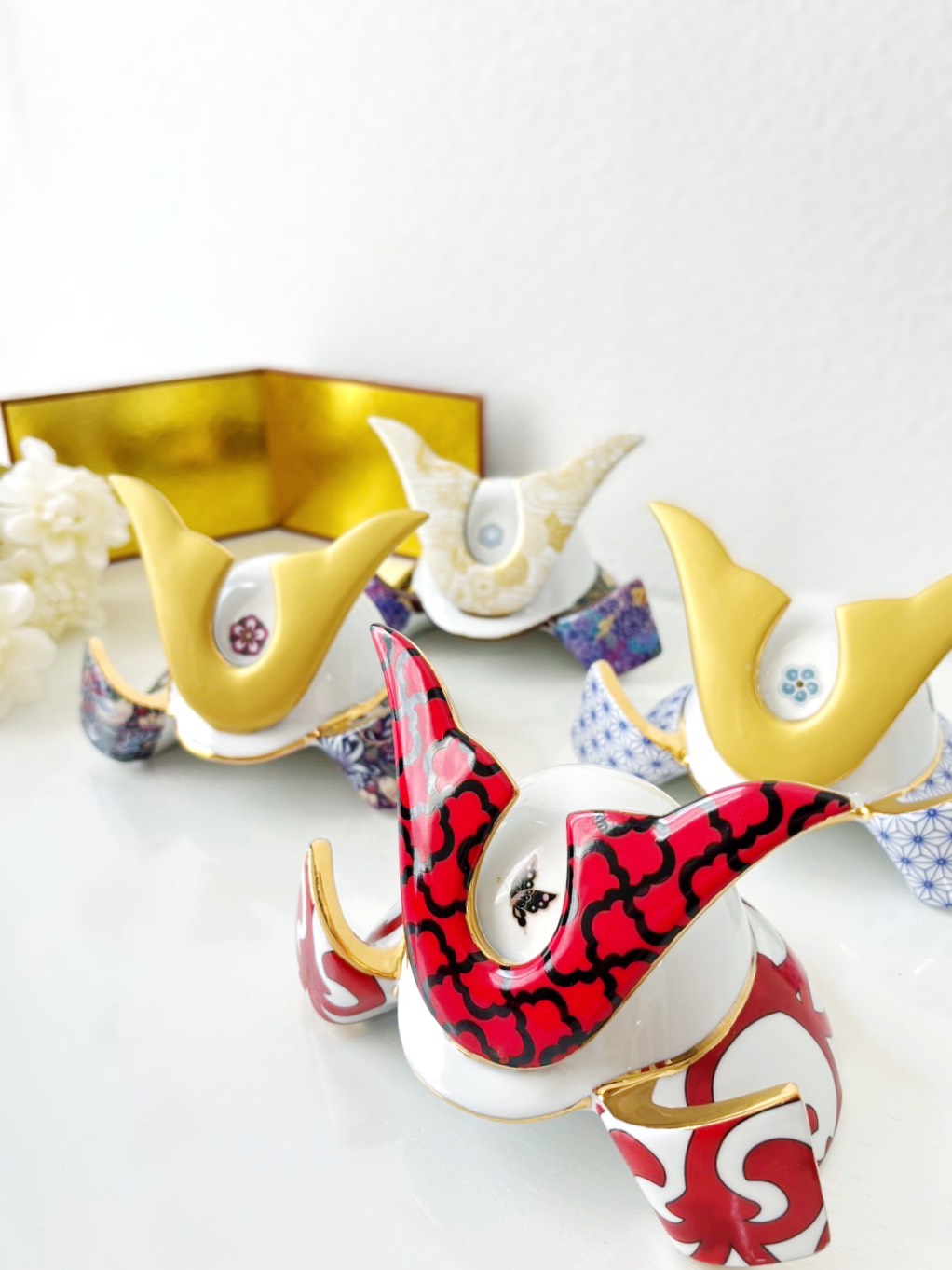洋風でスタイリッシュにデザインできるポーセラーツの兜は違和感なく飾ることができる点でも人気です♡